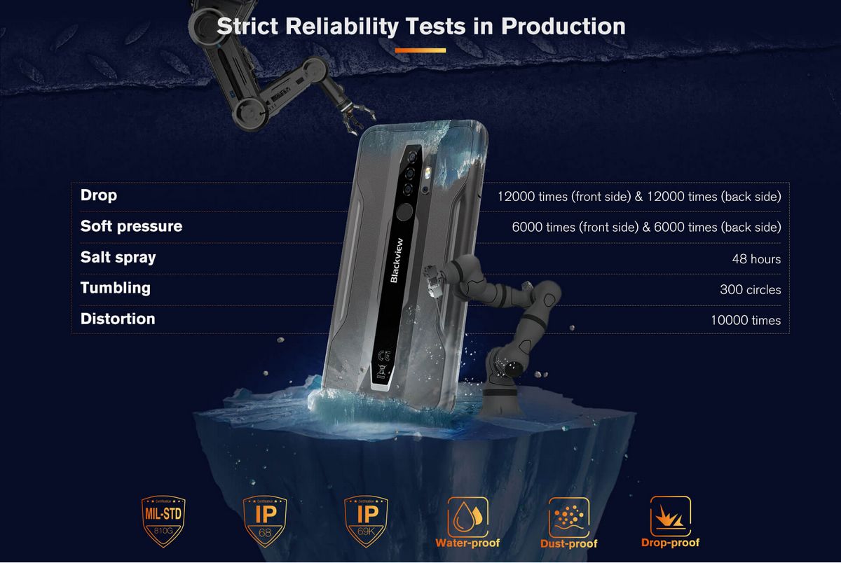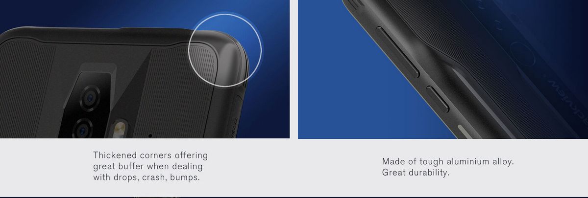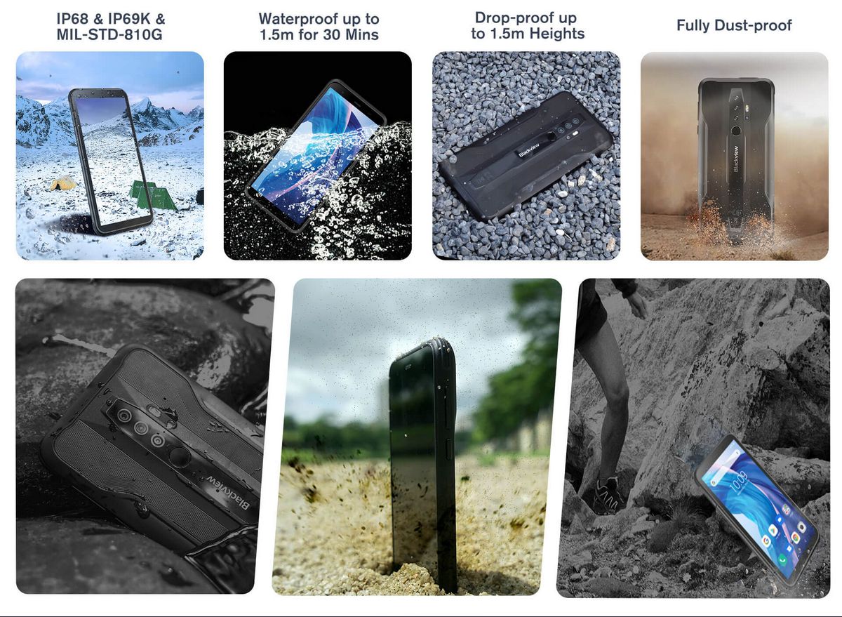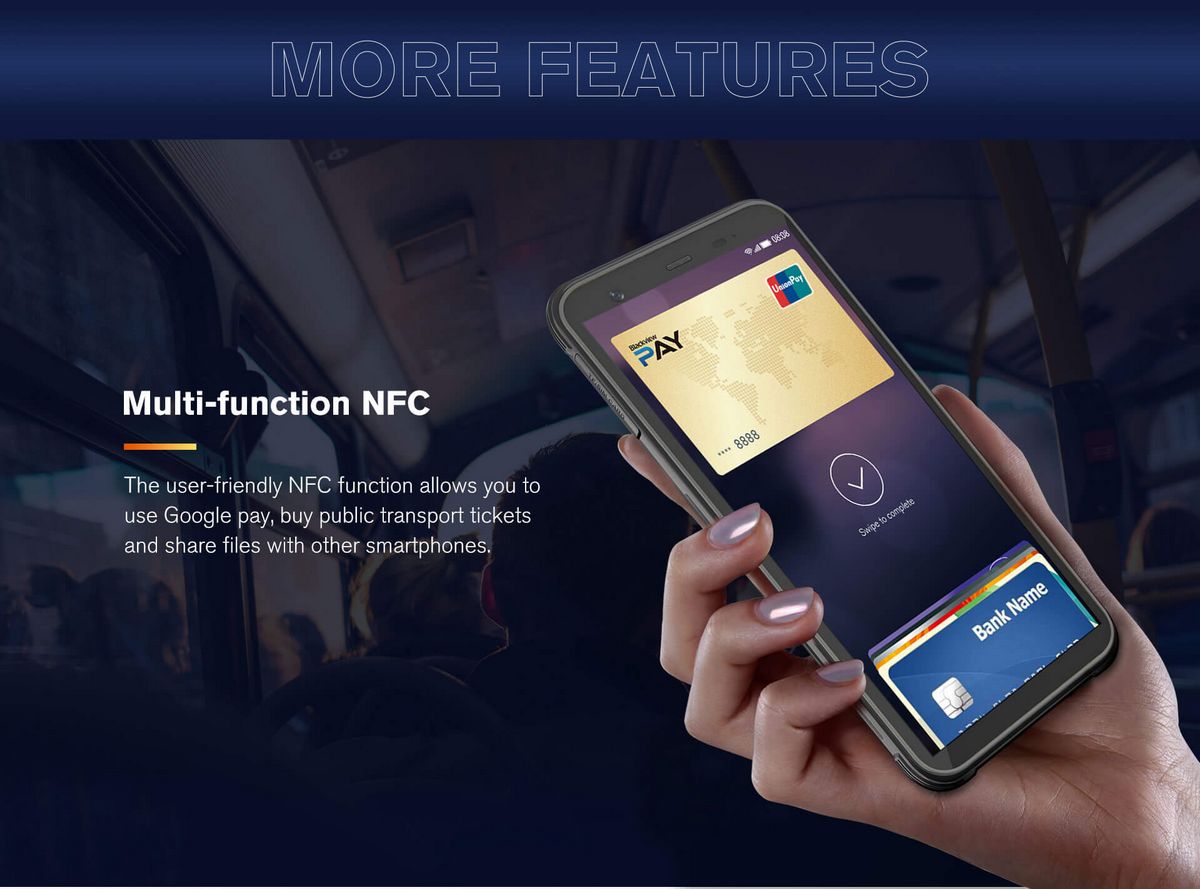 • Смартфон может работать под водой (на глубине до 5м), при высоких (до +60) и низких (до -40) температурах, не боится падения с высоты (до 5м), выдерживает внешнее давление в 0,5 тонны, также внутрь телефона гарантированно не попадет пыль, а химически активные вещества не повредят корпус