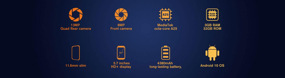 • Внушительная начинка: MediaTek Helio A25, 3Гб оперативной, 32Гб встроенной памяти, навигация GPS/ГЛОНАСС, LTE, камеры 16+8+2+0.3 Mpix (тыловая) + 13 Mpix (фронтальная)