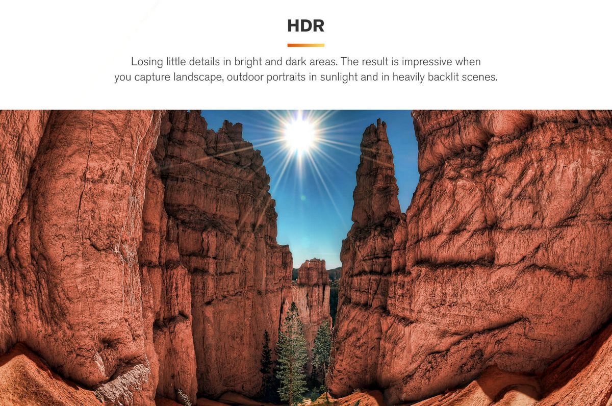 • Дополнительные функции: размытие заднего фона (эффект «Боке»), «Красота» (автоматическая ретушь), HDR, панорама, замедленная съемка, геолокация, распознавание лиц, таймер, подавление мерцания, подводная съемка